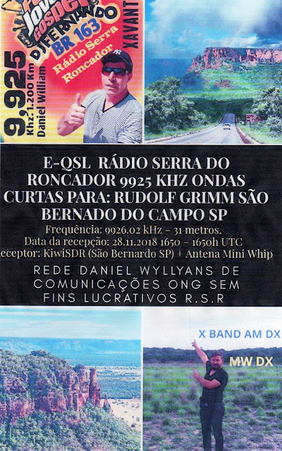 9926 kHz: Radio Serra do Roncador, e-QSL